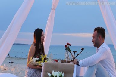Samimi bir evlilik teklifi yapmak isteyen damat adaylarımız için ideal olan otel konseptimiz sizi dış dünyadan koparıp başbaşa kalmanızı ve doyumsuz romantikliğin tadına varmanızı sağlar. Çeşme'nin birbirinden güzel otellerinde uçan balonlar, çiçekler, gül yaprakları, mumlar, sevgilinizin zevklerine uygun özel detaylar ve fotoğraflarla donatılmış bir oda... Müzikler, yiyecekler ve tabii güzel kokular eşliğinde hiçbir kadının hayır diyemeyeceği bir organizasyon. Cesmeevlilikteklifi ailesi sayesinde tepeden tırnağa mükemmel bir süpriz ile sevgilinize unutamayacağı bir evlilik teklifi yapabilirsiniz.